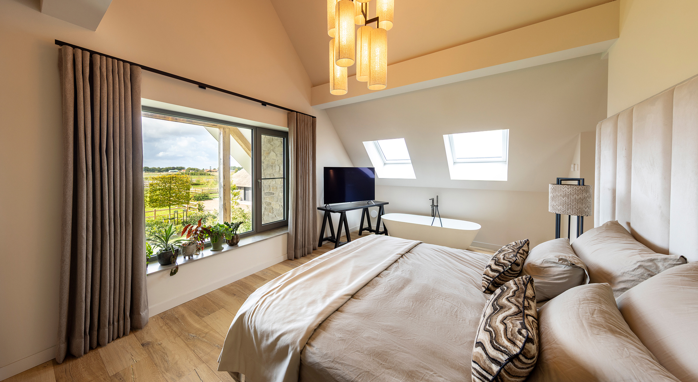 Woonhuis Koningsbosch Woonhuis Koningsbosch Deze schuine slaapkamerkast inclusief bureau zijn uitgevoerd in eiken fineer, afgewerkt met Monocoat charcoal. De houtkleur zorgt voor rust en warmte en in combinatie met het behangen verlichting is het geheel luxe en stijlvol. Contact